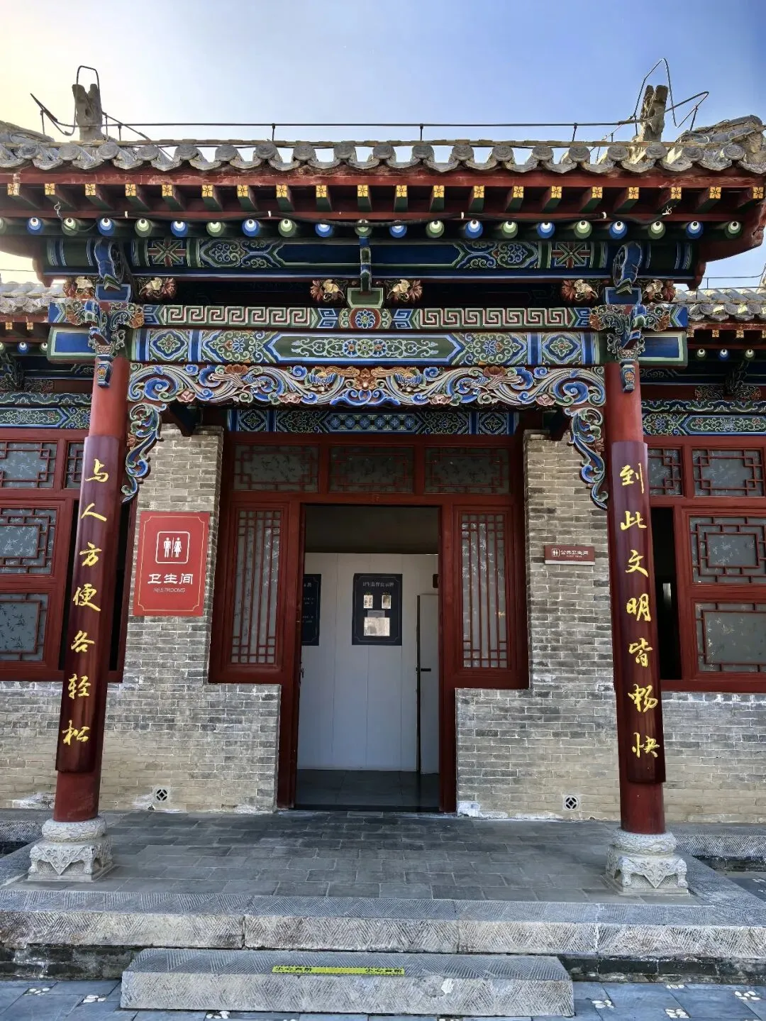 到此文明皆畅快;与人方便各轻松。