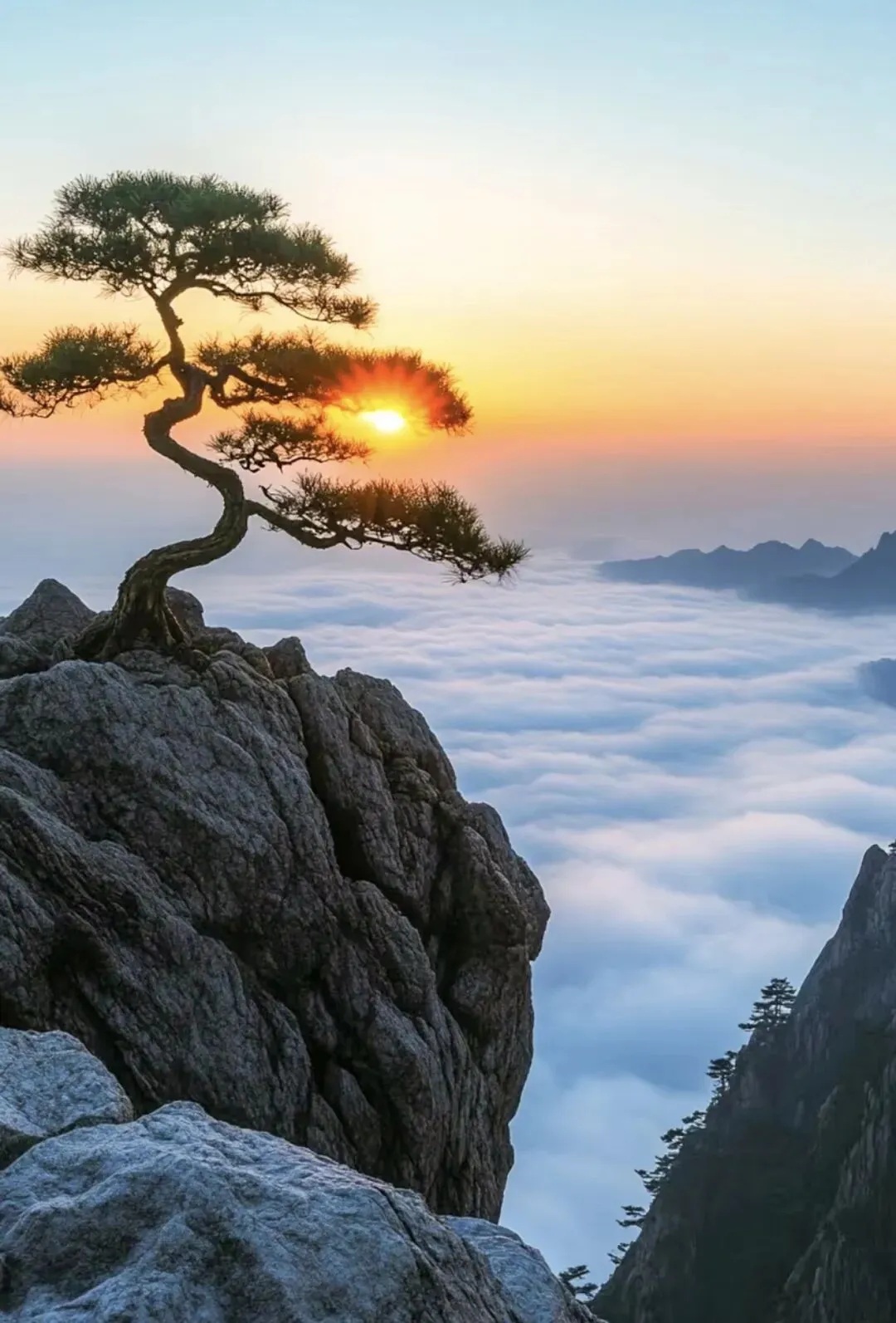 1⃣ 迎客松黄山的“名片”,树龄超千年,枝干如同伸出的双臂,迎接着来自世界各地的游客。站在它面前,总有一种“到此一游才算完整”的仪式感。