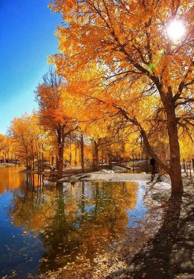 2、胡杨林旅游区(阿拉善盟额济纳旗) 是世界三大胡杨林之一,每年的9月到10月是旅游的最佳黄金期,胡杨树叶变得非常金黄璀璨。周边还有怪树林、黑城遗址也可一并旅游。