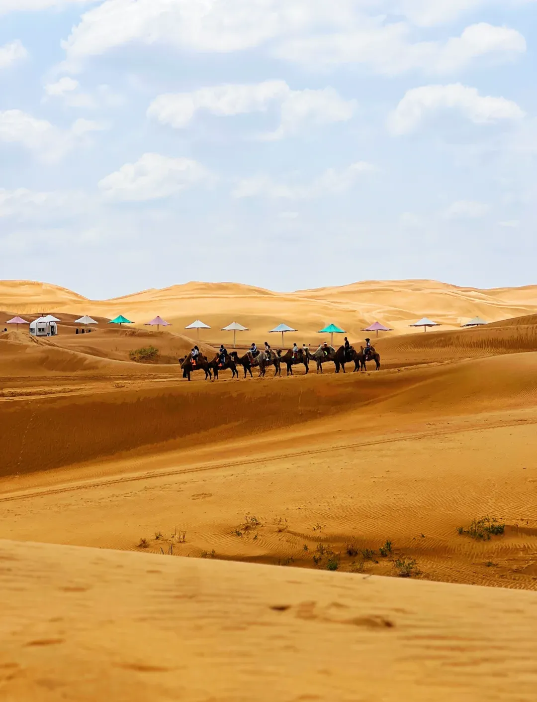 4、响沙湾(鄂尔多斯市达拉特旗) 这里位于库布齐沙漠的东端,是“会唱歌的沙漠”,因沙丘受外力摩擦会发出轰鸣声得名。这里的沙漠活动非常丰富:滑沙、骑骆驼、沙漠摩托,还有沙漠酒店可体验大漠星空下的住宿。