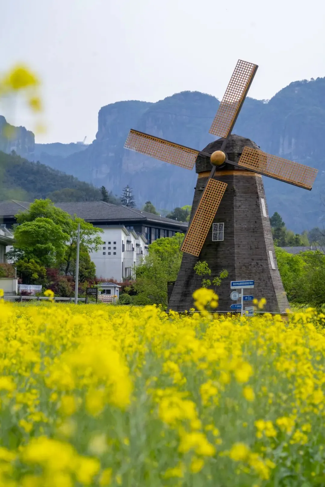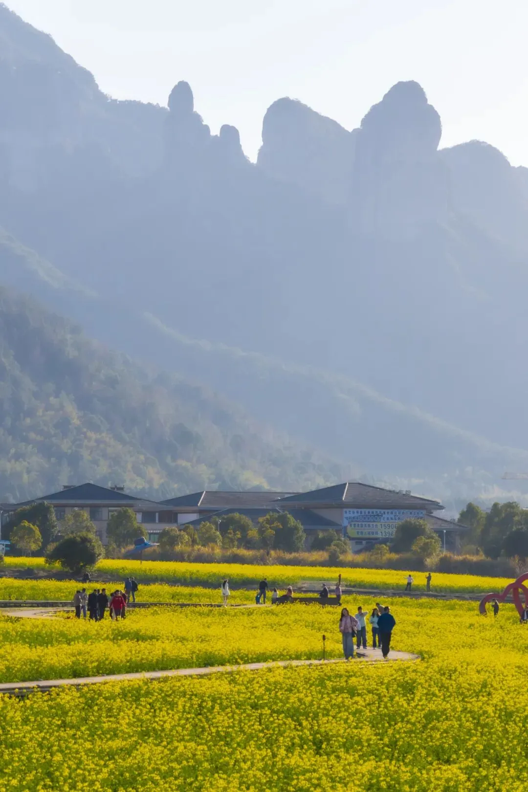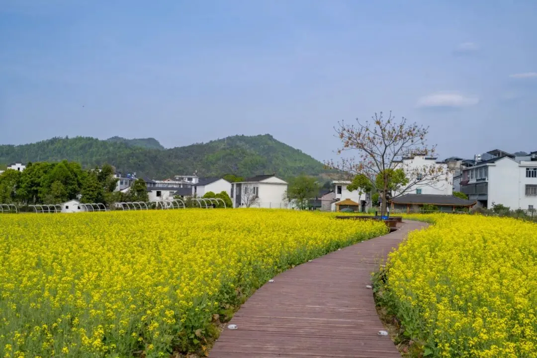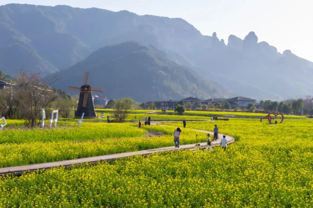 度假区的春天,从一片油菜花田开始。油菜花与远山、村落、溪流相互映衬,构成一幅立体的田园画卷,此时正是油菜花的最佳观赏期。