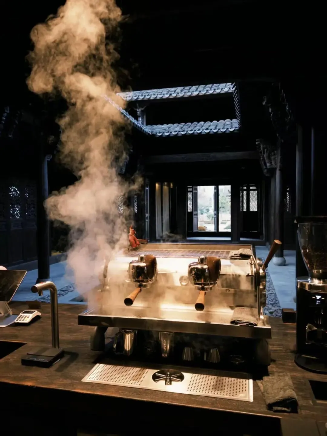 楠园榫卯咖啡则是藏在楠园深处,整个空间以榫卯结构搭建,坐在木窗前,看园中老树新芽,品一杯特调咖啡,香味在舌尖交织,像是古今的对话。