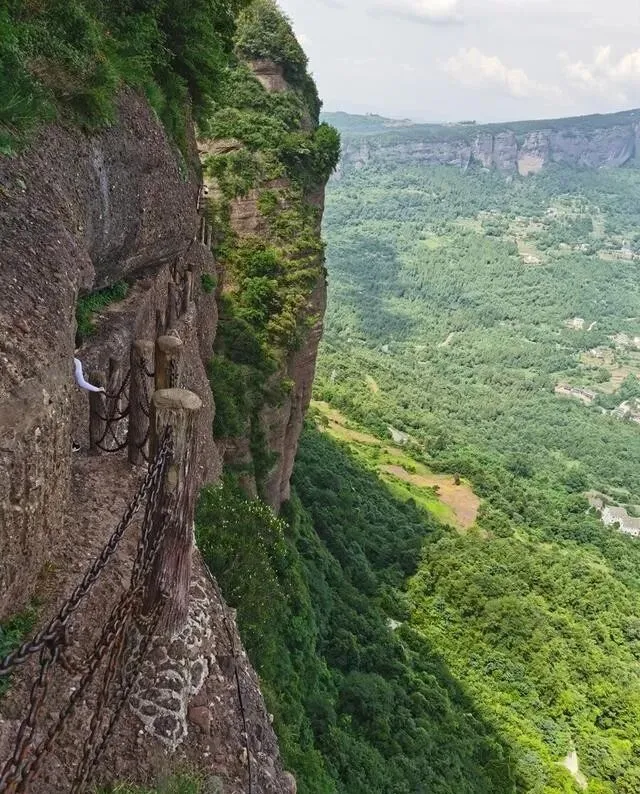 蜀道难难于上青天 , 说的就是这。 鸟道单行只上不下 , 旁边就是悬崖 , 恐高的腿直接软。 猿揉道更狠 , 没护栏 , 悬崖上走 , 要安全绳和教练带队!