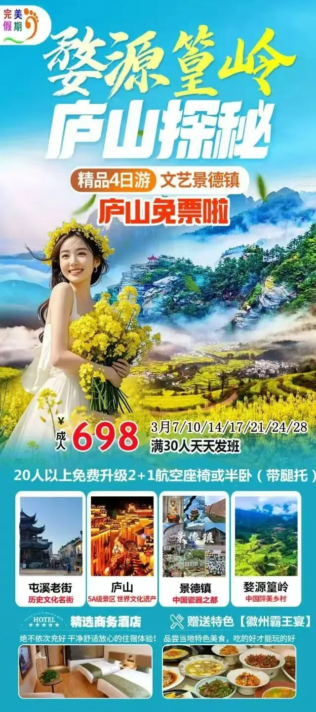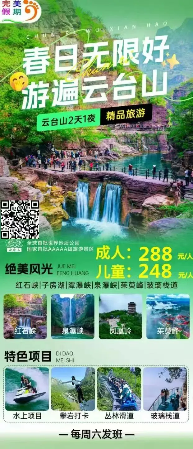 更有专属约惠福利加持,线路立减、同行优惠、高性价比畅玩无压力!无论是本地休闲、周边短途,都能满足你的出游心愿。趁春光正好,趁优惠来袭,做不被定义的女神,奔赴山海,遇见更美的自己!