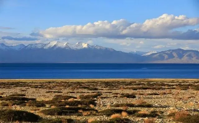 玛旁雍错南岸 , 背后纳木那尼 , 前面冈仁波齐。 藏地最神圣的山和湖 , 全挤进你的视野。 空旷辽远 , 真有种站在世界中心的错觉。