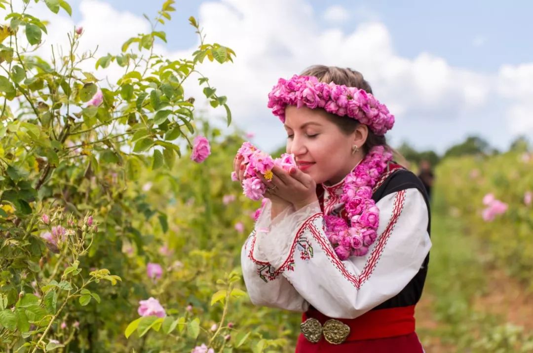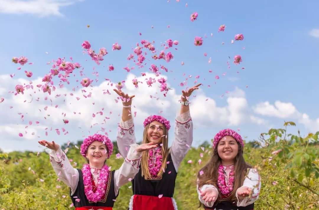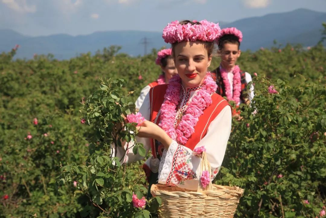 玫瑰园弥漫着沁人心脾的玫瑰花香,穿着鲜艳民族服装的保加利亚女孩聚集成群,载歌载舞,感谢风调雨顺带来的好年景。