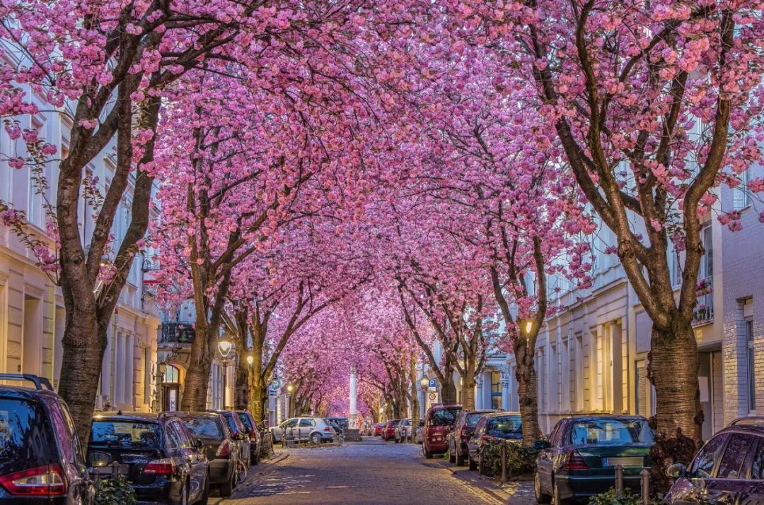 每年4月中下旬,德国莱茵河畔的波恩就会变成让人陶醉的樱花王国。