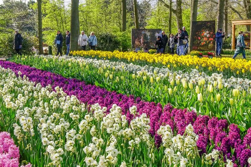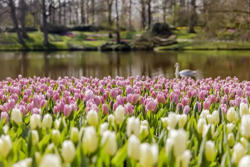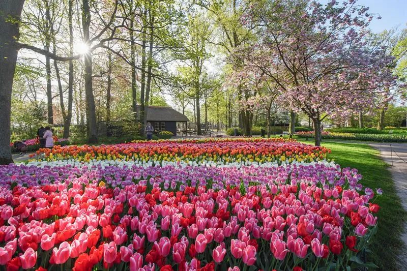 彼时,全世界最大的郁金香公园库肯霍夫公园,园内700多万朵郁金香争奇斗艳、尽态极妍,渲染出华美的无边花海。