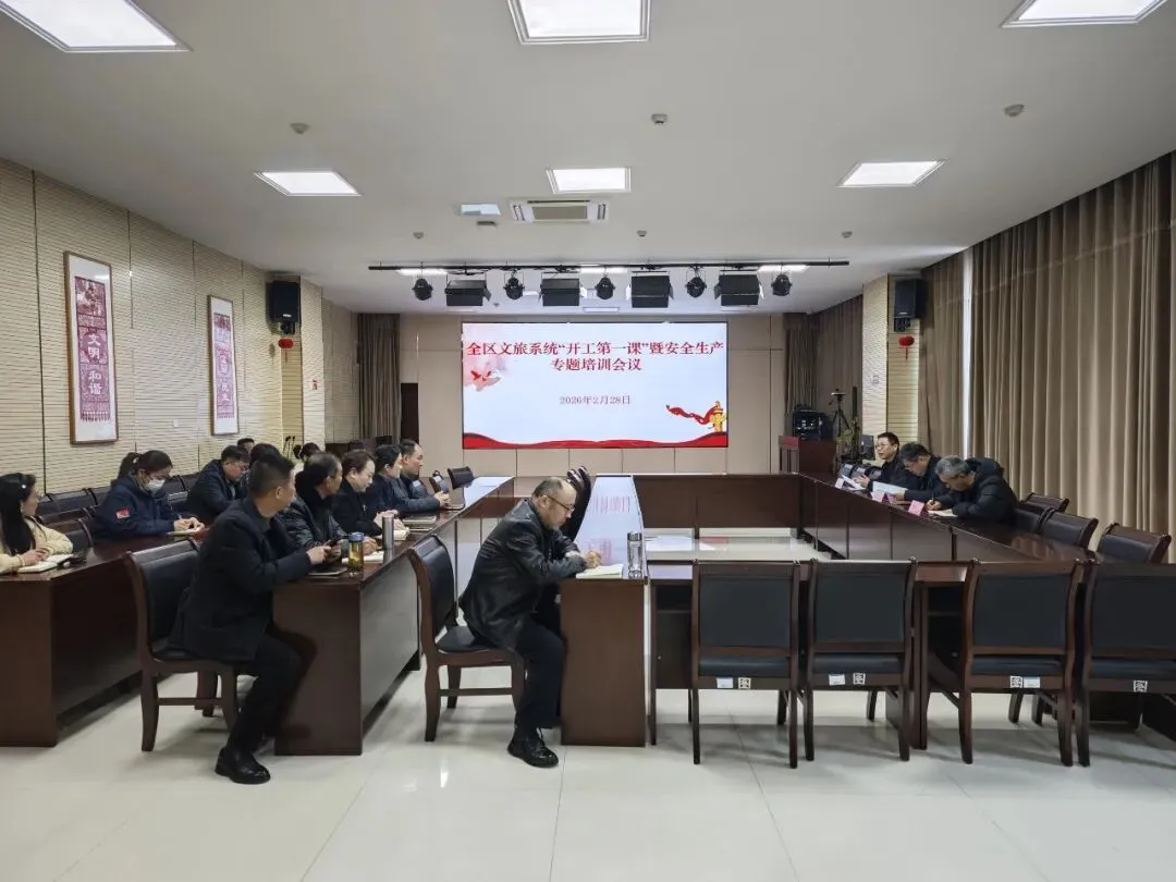 会议以“政策宣讲+案例警示+工作部署”的形式开展,集中观看文旅领域安全生产事故典型案例警示片,传达贯彻各级关于安全生产有关会议及文件精神,并对 2026 年全区文旅领域安全生产工作及复工复产专项检查作全面部署并提具体要求。