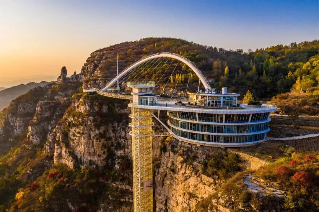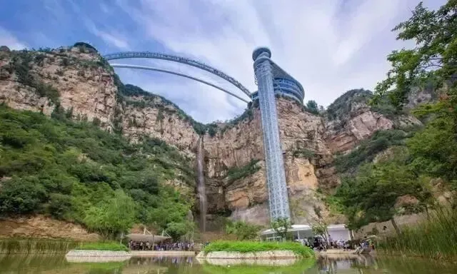 百米观光电梯采用全景玻璃设计,依悬崖而建,集观光、代步、游览为一体。桥体的彩虹状独特造型,充满动感与美感,且与山崖风格浑然一体。潭溪山高空玻璃桥迄今为止,潭溪山高空玻璃桥已获得两项国际大奖:2019年世界结构大奖——行人桥梁奖,2020年国际桥梁大会(IBC)——亚瑟·海顿奖。