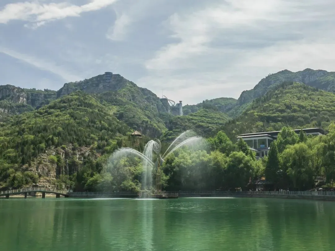 为山东省最长峡谷漂流,全长2000余米,全程7-8分钟,旋转弧度5199度,高差160米,相当于50多层楼那么高!