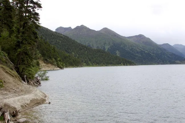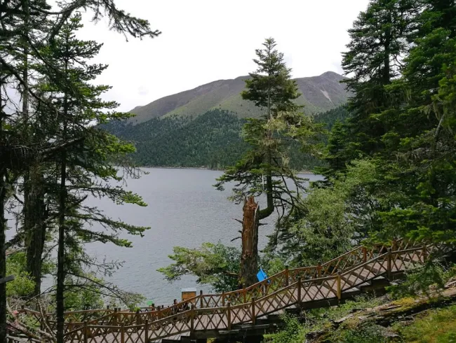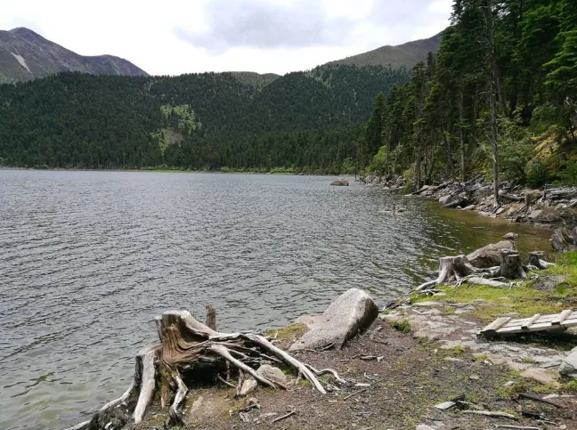 湖区四周的原始森林以冷杉和金竹为主,还有漫山的杜鹃花。我们到达时大多杜鹃已经谢幕,但不时还可看到迟开的鲜花,其中以黄杜鹃最为鲜艳,黄杜鹃在藏民心中最为神圣。站在湖边,湖水浩荡,烟波缥缈,小徐说若是有缘可以看见湖里游泳的赤麻鸭。赤麻鸭是藏民心中爱情的象征,比内地的鸳鸯更加忠于彼此。据说若是一方不幸去世,另一方绝不独活,一定也会殉情而亡。因此赤麻鸭又被称作痴麻鸭,藏族年轻人定情时,送给对方的信物必定有痴麻鸭的形象。年轻人来到冰湖,希望能够看到痴麻鸭,是对彼此爱情吉祥的祝福。