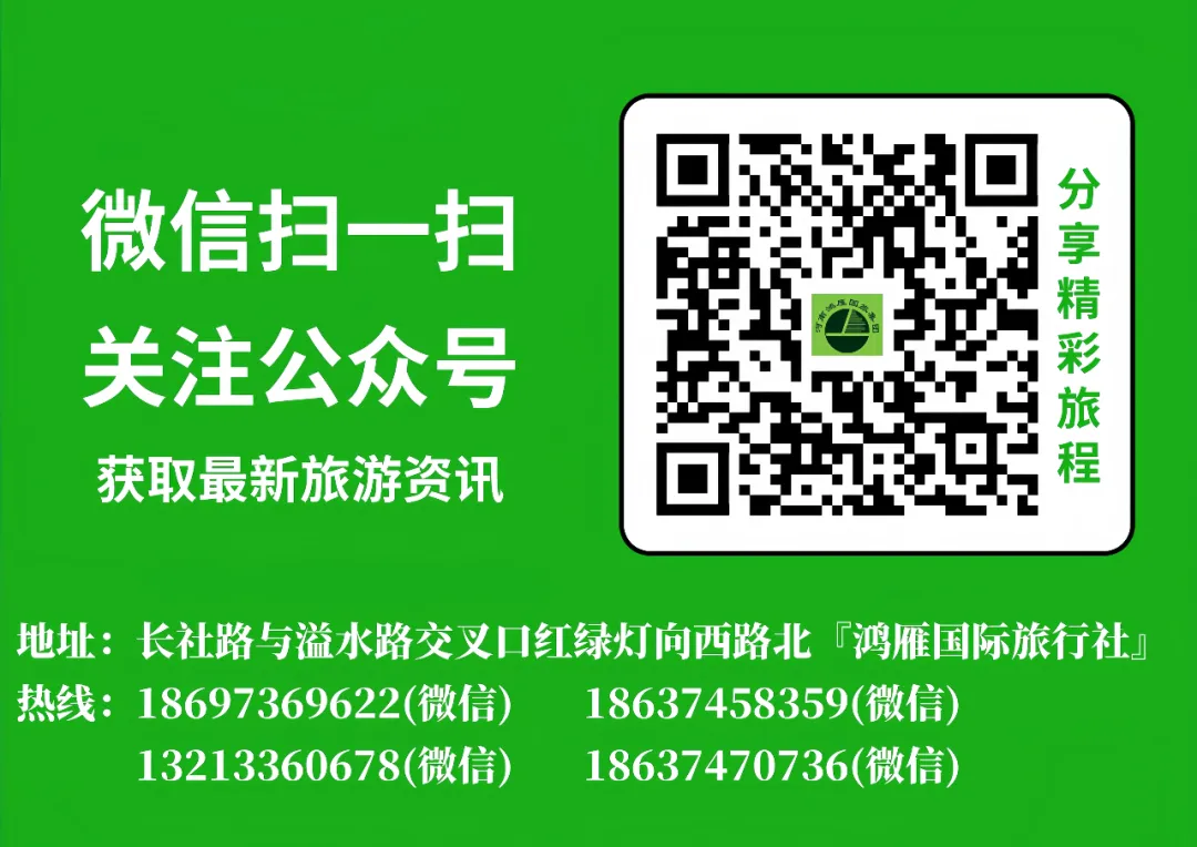 【特别声明】我们尊重原创,也乐于分享。本活动文字配图和视频来自景区微信公众号、领队实拍和网络,仅为参考,实际效果以现场为准。部分图片原作者不详,如原作者或者版权所有者不同意使用,请与我们联系及时删除。图片下载时,图片无LOGO和水印说明版权情况,下载链接也无版权说明,不接受其他人或者团体提出的版权索赔侵权等诉求。