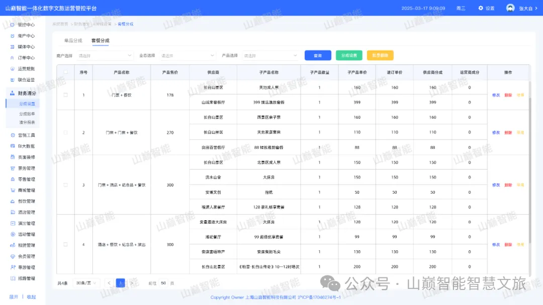 支持多景区、多业态、多商户联合运营及营销,实现产品的整合、优化,支持跨景区、业态、商户组建套餐产品,支持财务自动清分。无论是管理、运营还是营销,都将带来立竿见影的提升。
