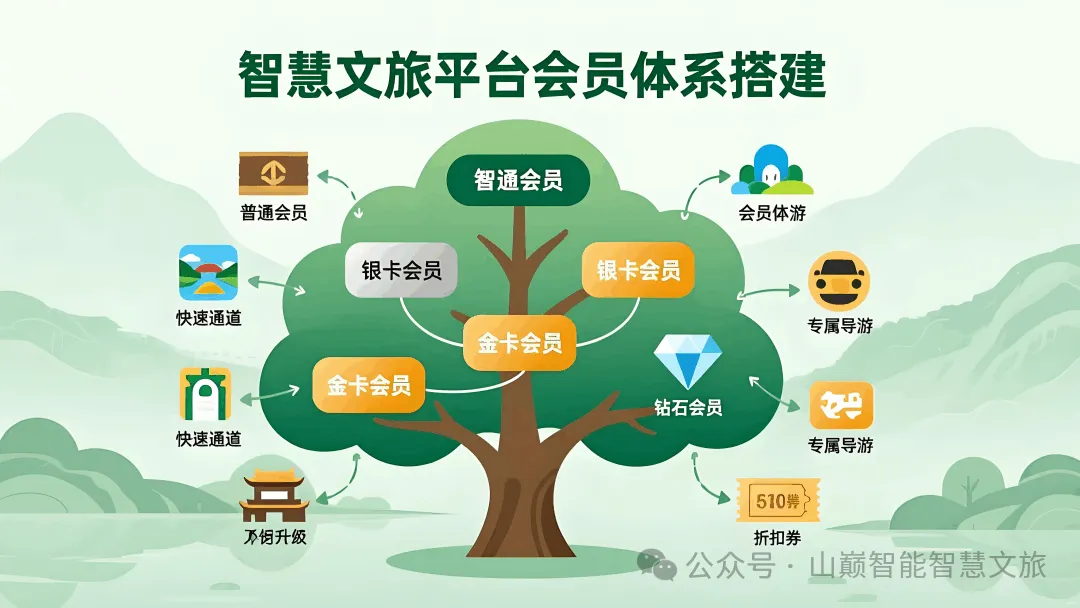 基于数字文旅平台的多景区、多业态、多商户一体化模式,会员体系将贯通全部业态消费场景,搭建红包、积分、权益、折扣、卡券、满减、满赠、抢购、秒杀等营销工具体系。
