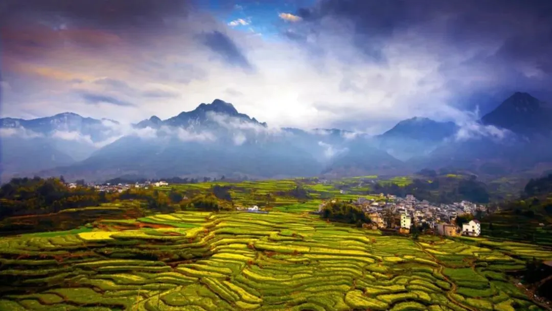 安徽绩溪家朋梯田油菜花 徽州古城 卢村 新安江竹筱漂三日