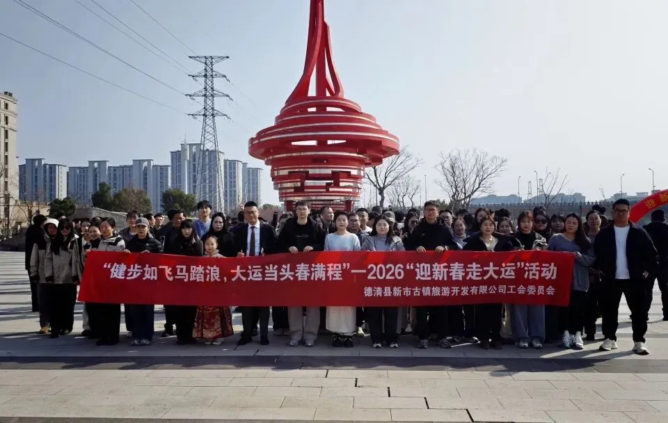 2月11日,新市公司及下属子公司全体员工参加 2026 年 “迎新春 走大运” 活动。活动以大运河文化为依托,融合全民健身与新春民俗,沿运河游步道开展 3.2 公里健步走,现场设置送春联、福字礼包、特色市集、拔河比赛等环节,生肖属马及姓名含 “马” 字人员可领取专属礼品。公司代表队在拔河比赛中奋勇拼搏、默契协作,成功斩获第一名。全体员工精神饱满、踊跃参与,营造了欢乐祥和的新春氛围,展现了昂扬向上的团队风貌,为丰富群众精神文化生活、助力古镇文旅融合发展注入新活力。