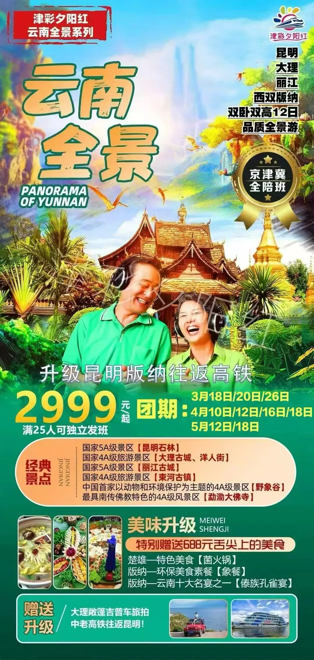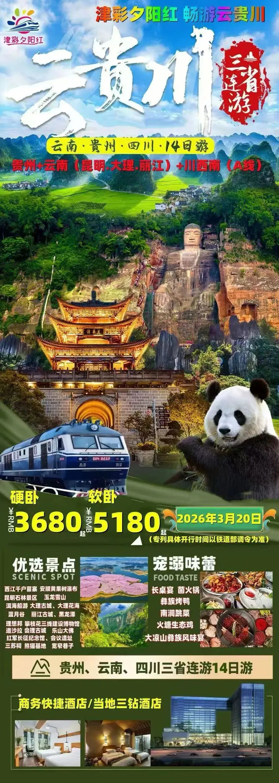 🚞津彩号2026年上半年专列计划: 特别推荐:4.10日津彩~云梦之巅专列12日游,真正的云南纯玩小众秘境之旅,