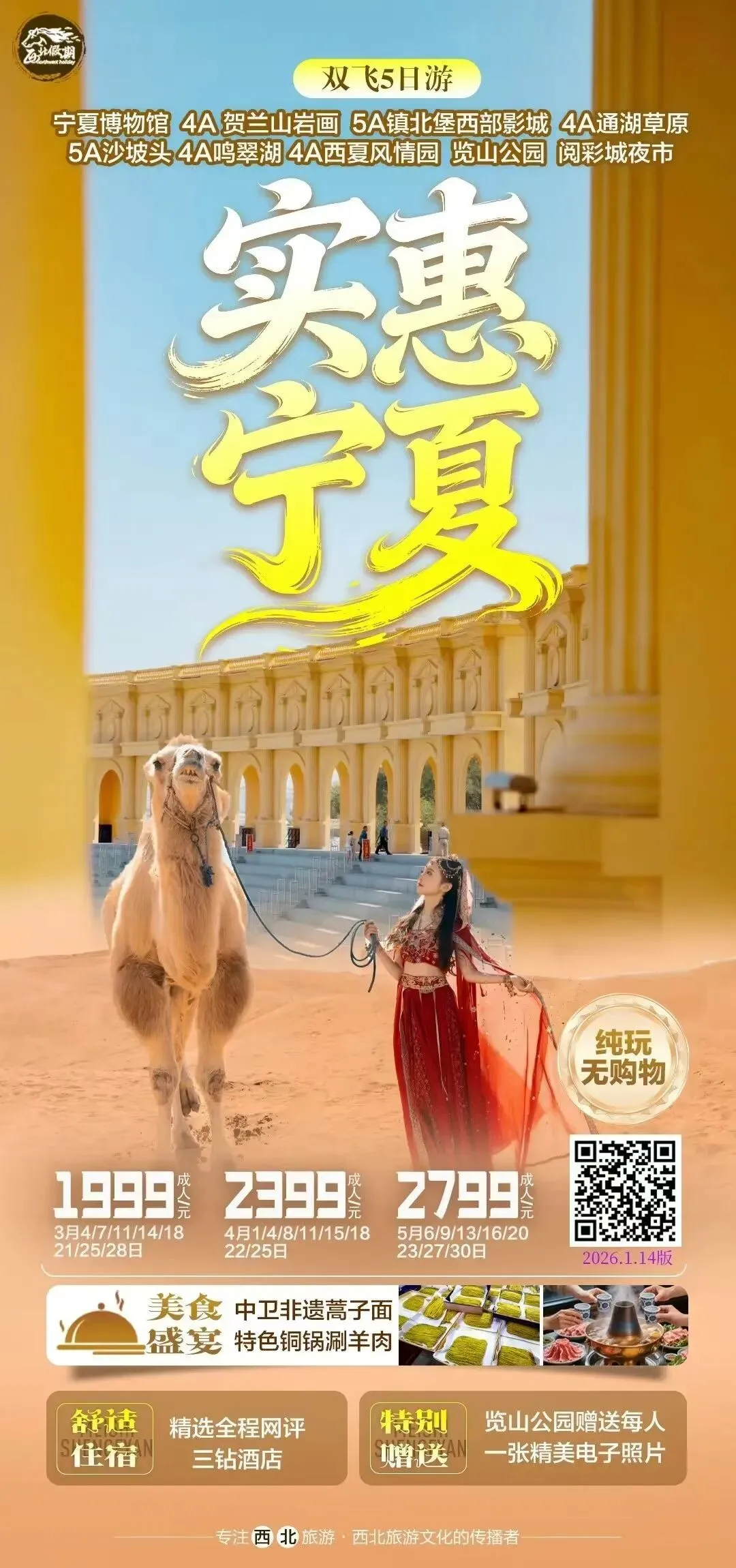 【实惠宁夏】双飞5日