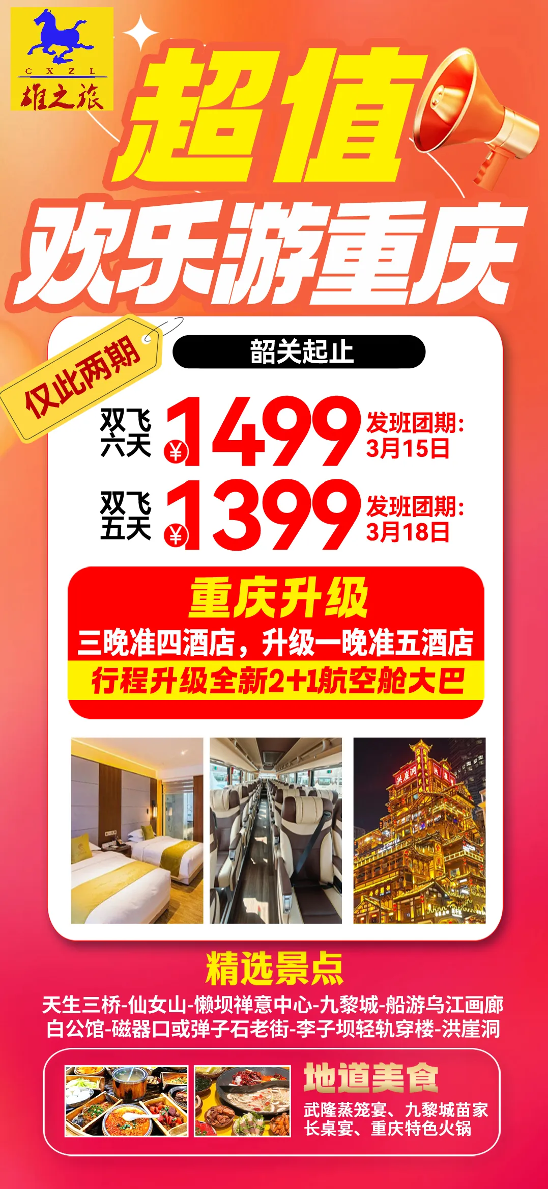 本期图片来源:供应商 本社另有租车、单位定制党建红色线路、代购全球机票、签证等业务,欢迎到店咨询!