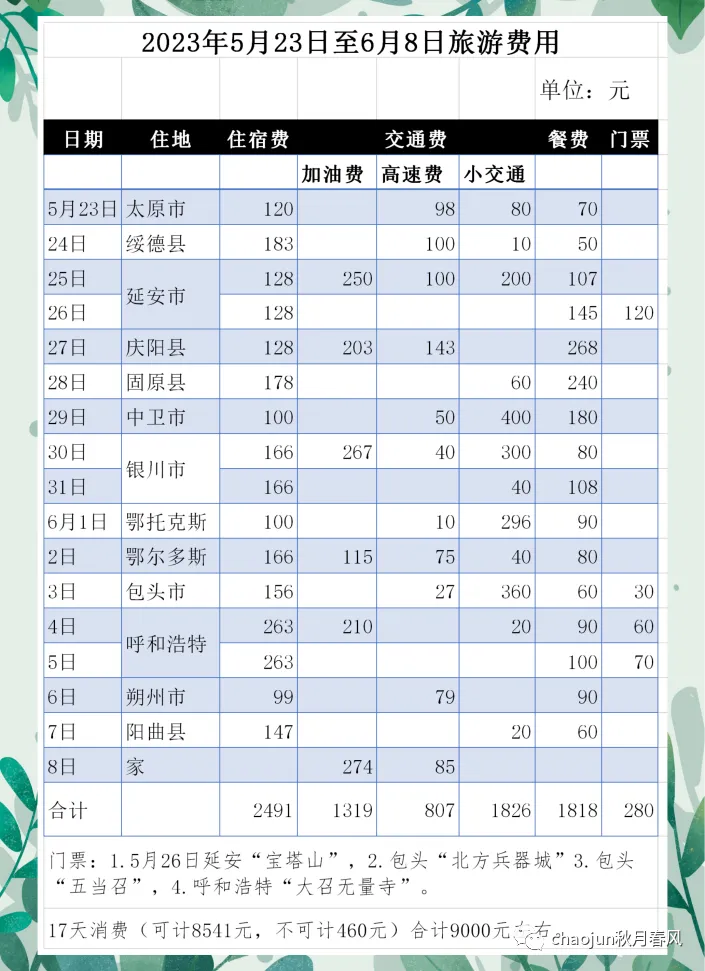 2023年5月1日至6月7日走过8个省,住过18家酒店,打卡50处景区。以西南、西北高原地方为主,5月上旬飞到了心心念念的玉龙雪山、香格里拉旅游,5月下旬和6月上旬完成了从宁夏南部到宁夏北部等的自驾游,行前有个基本目标,第一次自驾游17天,创历史记录。我们旅游看景点走马观花,锻炼身体倒是实实在在的,接下来整理整理流水账,整理整理照片,再从网上学习学习知识点,在家有事干了。