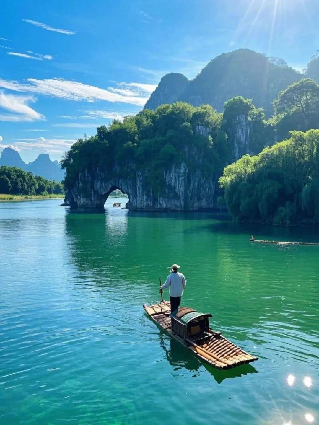 山.不.是一座.座站着,.是刚从水里长.出来,.湿.漉漉的。.坐.竹筏从杨堤到兴坪,二十块钱人民币.的风景就在手.边。船.工不紧不慢地撑.篙,山影倒扣在江里,水.清.得能看见.下面的草。