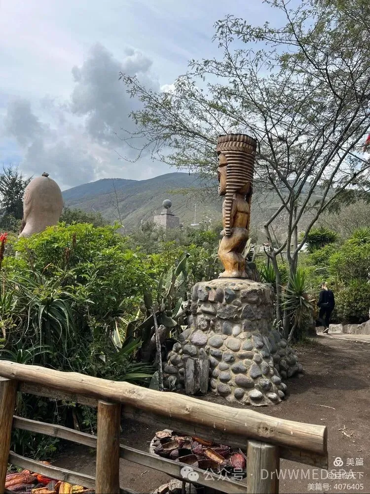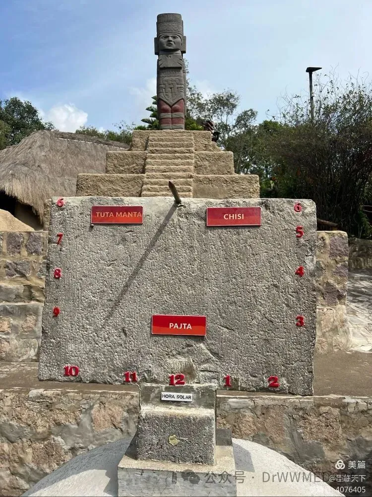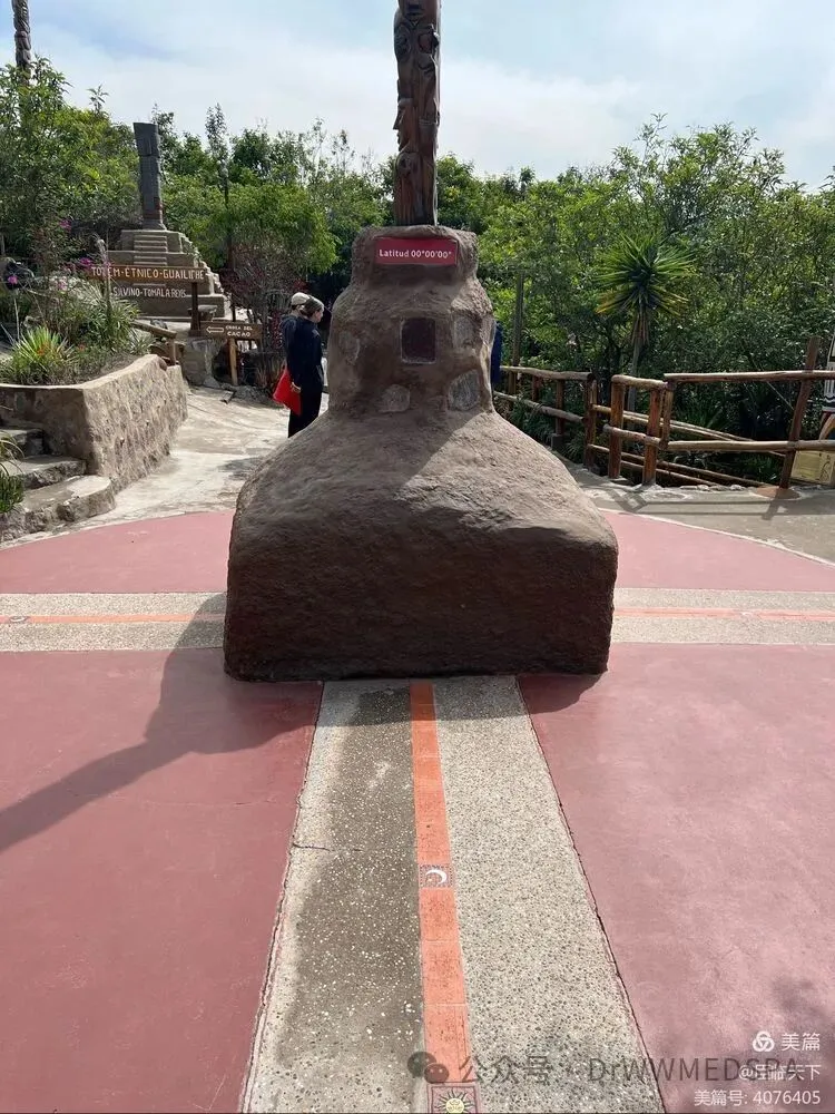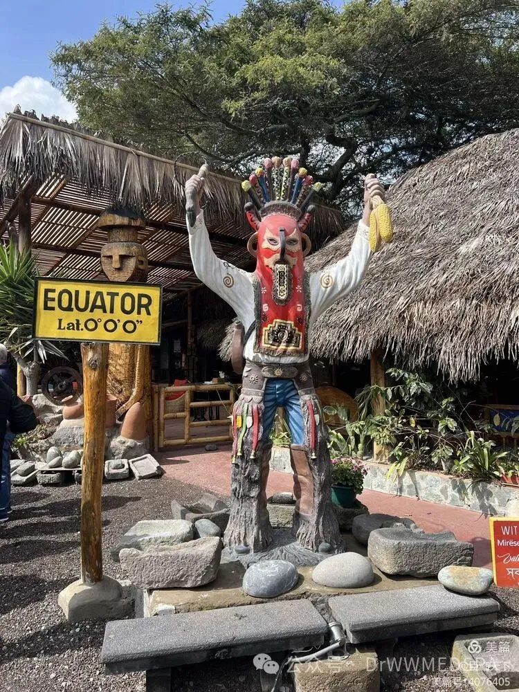 在赤道公园博物馆的入口处矗立着一尊身着印加服饰的雕刻人偶,有一个指示牌上赫然写着“赤道纬度:0点0分0秒”。
