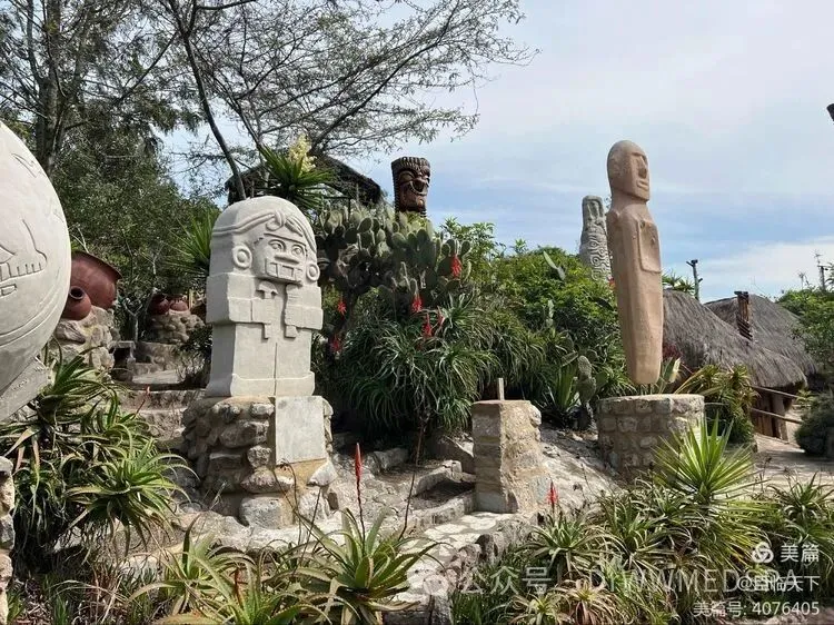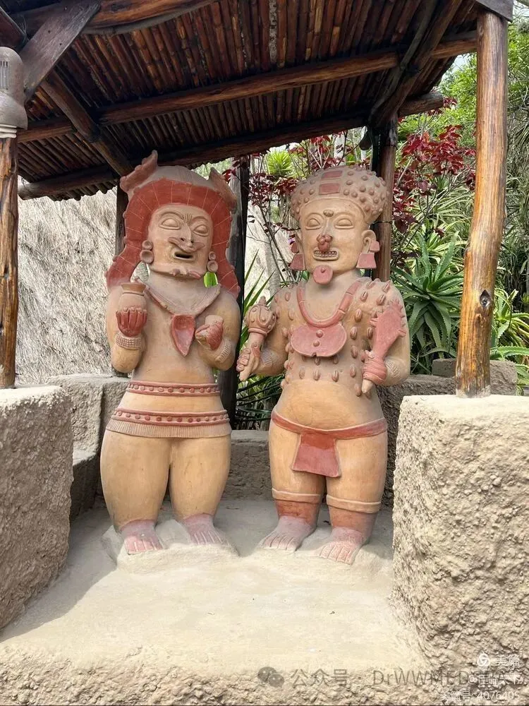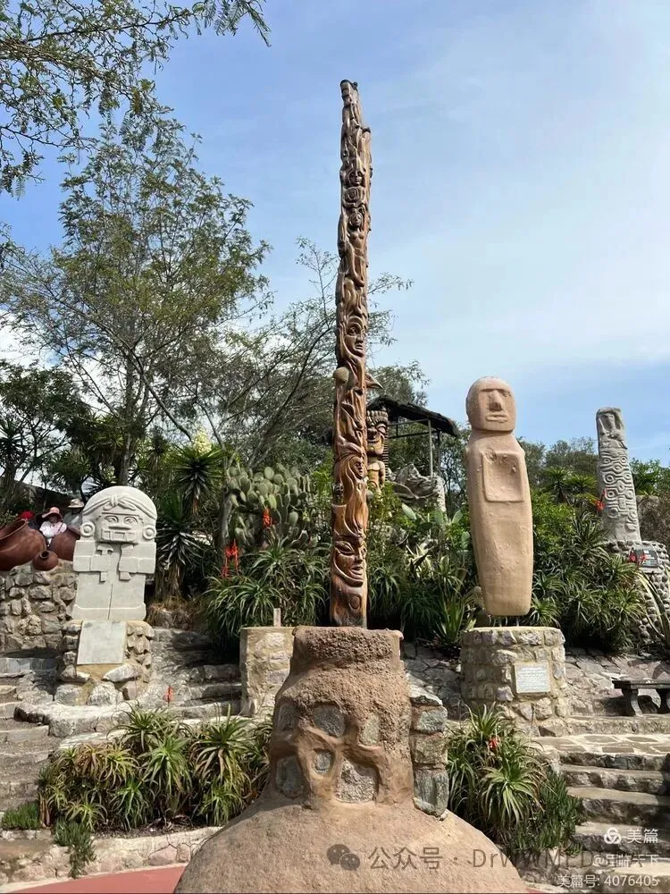 我们雇了一位英语流利的博物馆的女导游,她的讲解十分到位。走进赤道公园博物馆的园区,斜坡上矗立着数尊图腾、石雕,导游一一讲解,那些都代表着墨西哥、秘鲁、智利、巴西……等南美洲国家的古文明。