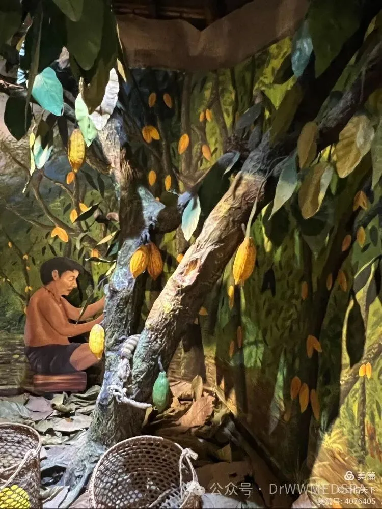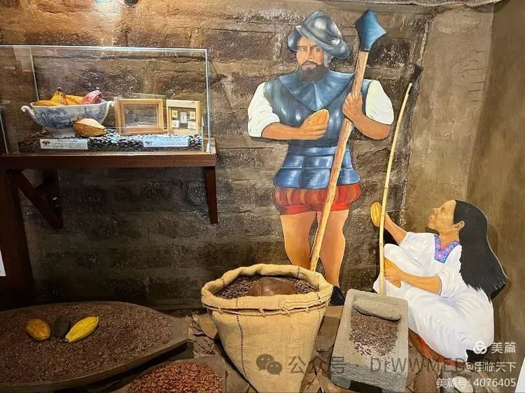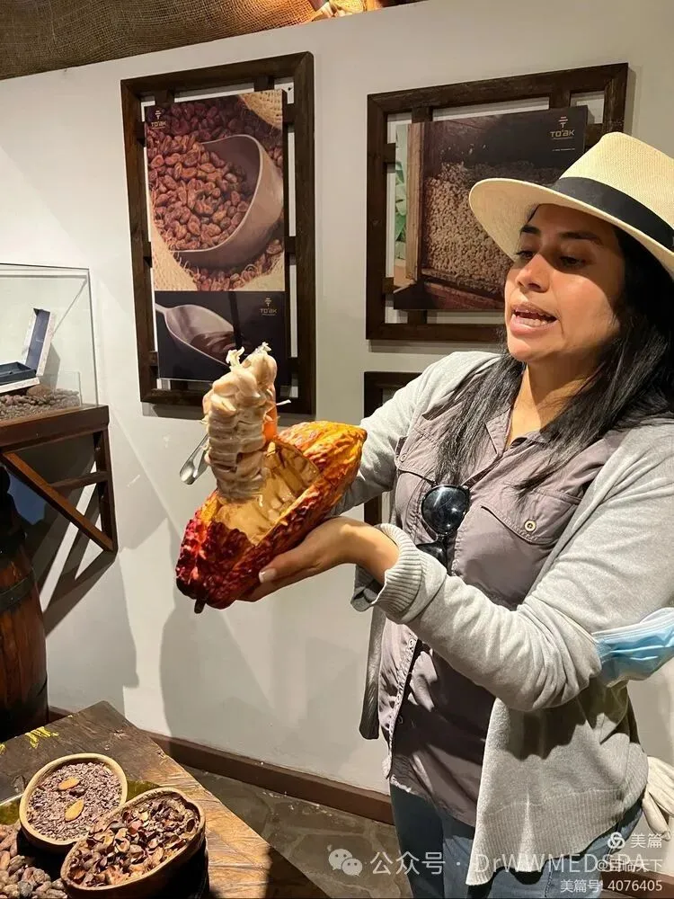 导游还讲解了厄瓜多尔的经济作物可可豆。可可在古印加时代便成为广受欢迎的经济作物。在印加时代,可可豆起着货币的作用,成为易物换物的媒介。导游讲有记载:3粒可可豆可以换一堆菜蔬,20粒可以换一头家畜,而100粒可可豆则可以换一个妻子。