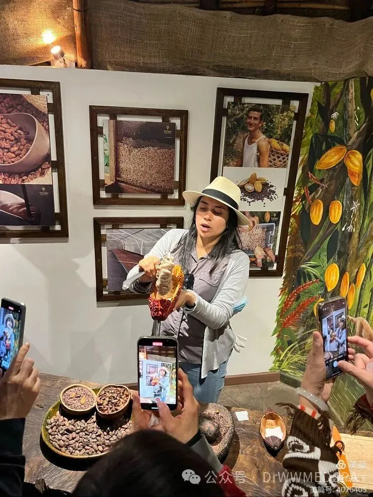 目前可可豆已成为制造巧克力的主要原料,出口到欧美众多国家。厄瓜多尔也成为各种制作生产巧克力的国家。导游让大家品尝了不同口味的巧克力糖。