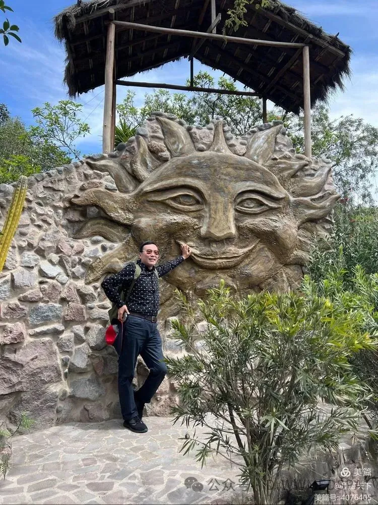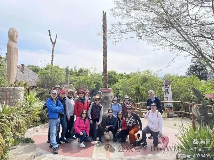 参观完赤道露天博物馆,大家意犹未尽,透过院内的特色雕塑,仍然沉迷于对异国风情的回味,留下这张这次厄瓜多尔游的全家福。