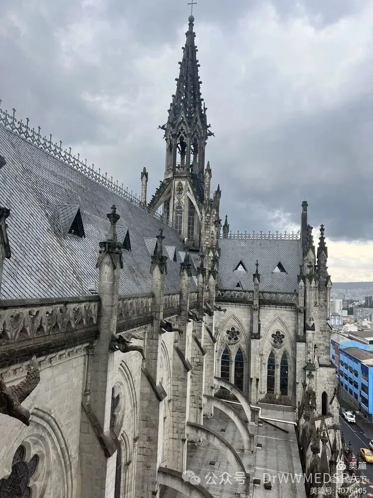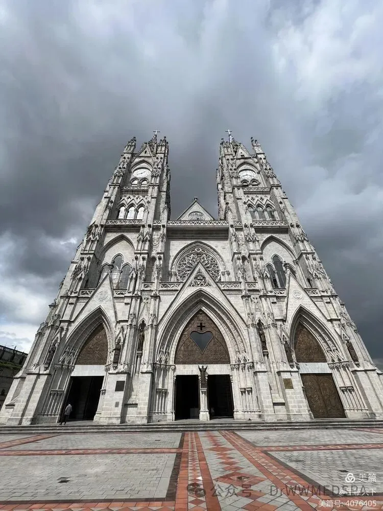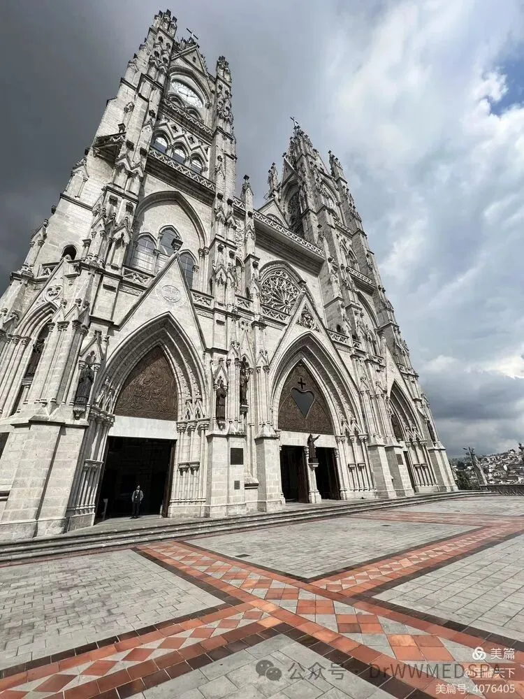 我们先来到国家誓言大教堂 (Basílica del Voto Nacional),这是一座罗马天主教宗座圣殿,位于厄瓜多尔基多的历史中心。这是美洲最大的新哥特式教堂,长140米,宽35米,双塔高115米。是哥特式建筑,被誉为南美洲最美的教堂之一。特别是站在教堂的顶塔上,能将基多全城的风景尽收眼底。