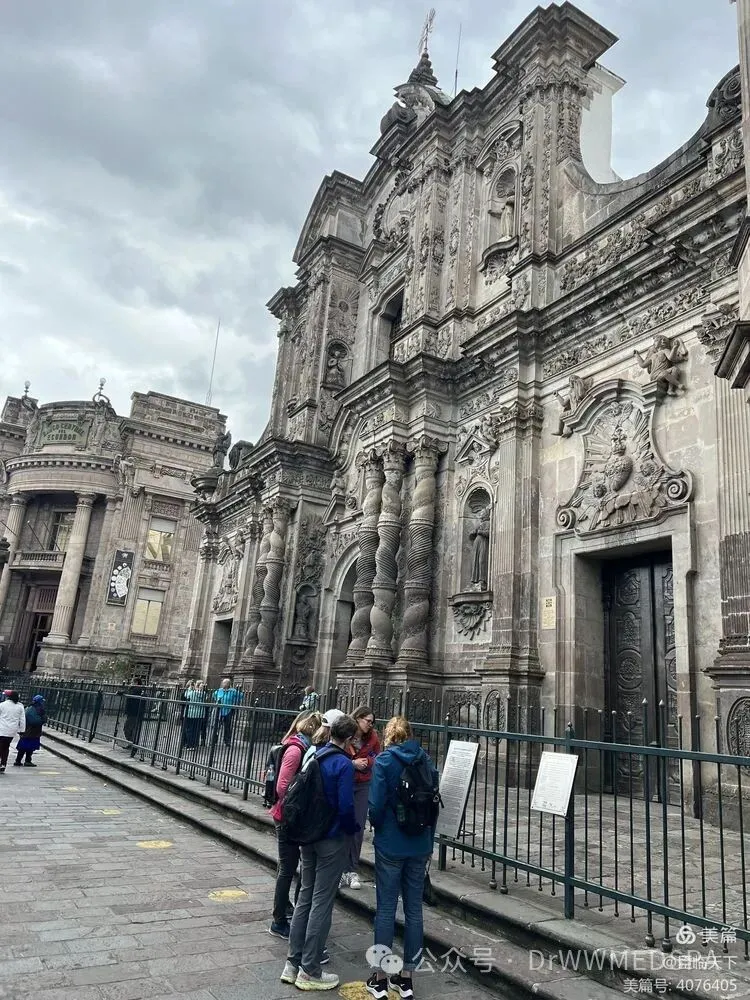 下午我们在酒店稍作休整,在当地导游的带领下,开始了基多老城的步行游。厄瓜多尔首都基多 (Quito) 的历史悠久,可追溯至哥伦布发现美洲大陆以前,基多是在一座印加城市的废墟上建成的。这座规模宏大的城市绵延穿过美丽的安第斯山谷,周围环绕着很多火山峰。它是拉丁美洲改变最少的历史中心,整座城市被联合国教科文组织列为世界文化遗产。基多的主要景点包括圣国家誓言大教堂、弗朗西斯科修道院和圣多明各修道院等典型的巴洛克式建筑,还有其他大小等80余座教堂和修道院。在基多老城区里历史中心漫步游览,是一件很轻松惬意的事。