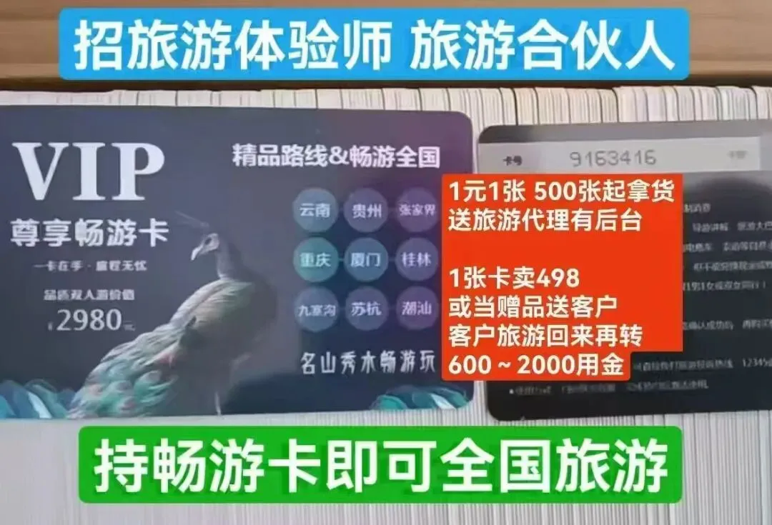 仅0.8元1张旅游卡,1250张旅游卡拿货,仅收998押金