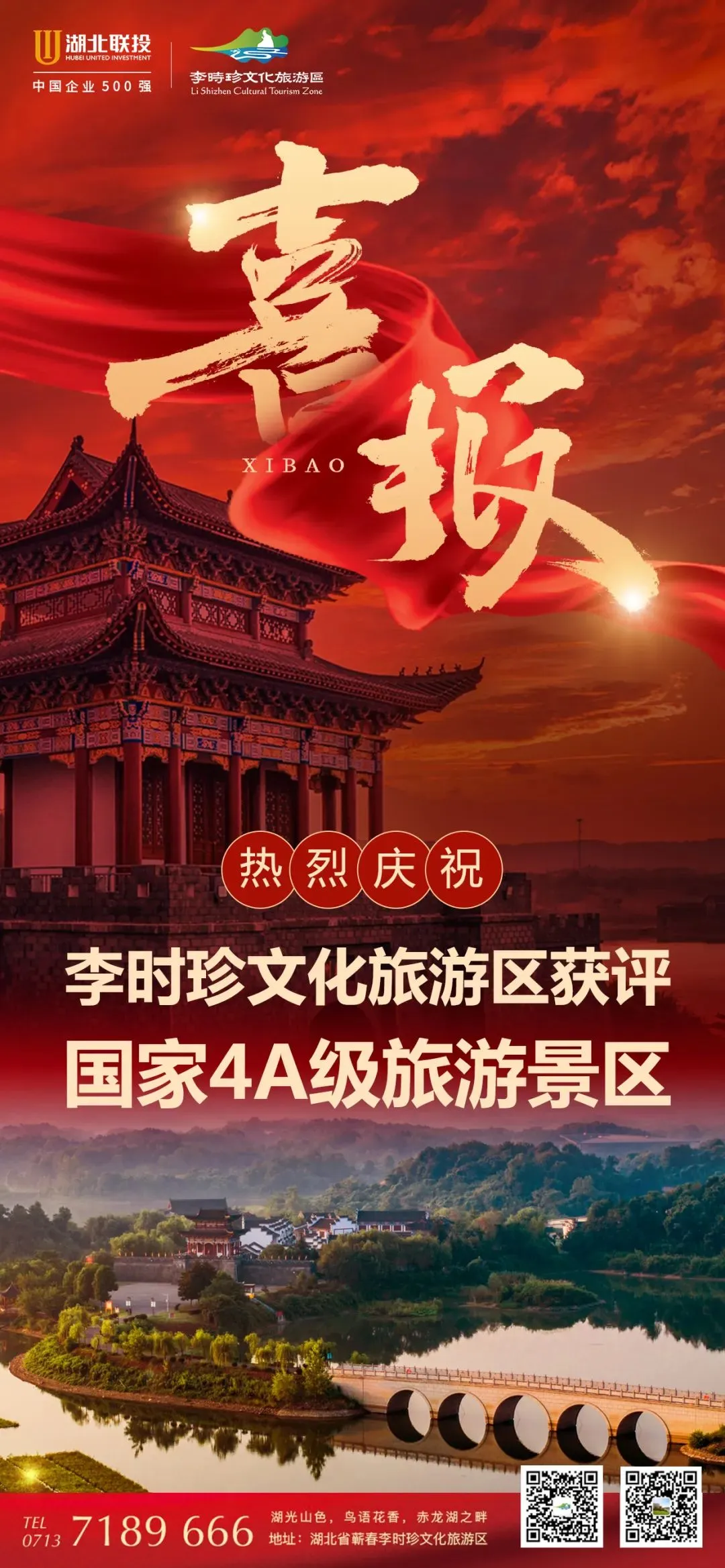 2024年12月31日,湖北省文化和旅游厅发布的《关于确定国家4A、3A级旅游景区和公布省级旅游度假区的通知》,其中联投鄂东公司“黄冈市蕲春李时珍文化旅游区”、联投新城集团梧桐湖新城“鄂州市梁子湖区凤栖绿洲生态文明博览园”正式被确定为国家4A级旅游景区,成为湖北联投首批国家4A级旅游景区。