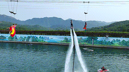 高山叠水瀑布、音乐喷泉、紫藤长廊、无动力乐园、绳网乐园、彩虹滑梯、彩虹滑道、蹦蹦云、水上拓展、环山步道、仿古水车、观湖赏鱼、丛林射击、丛林射箭等。