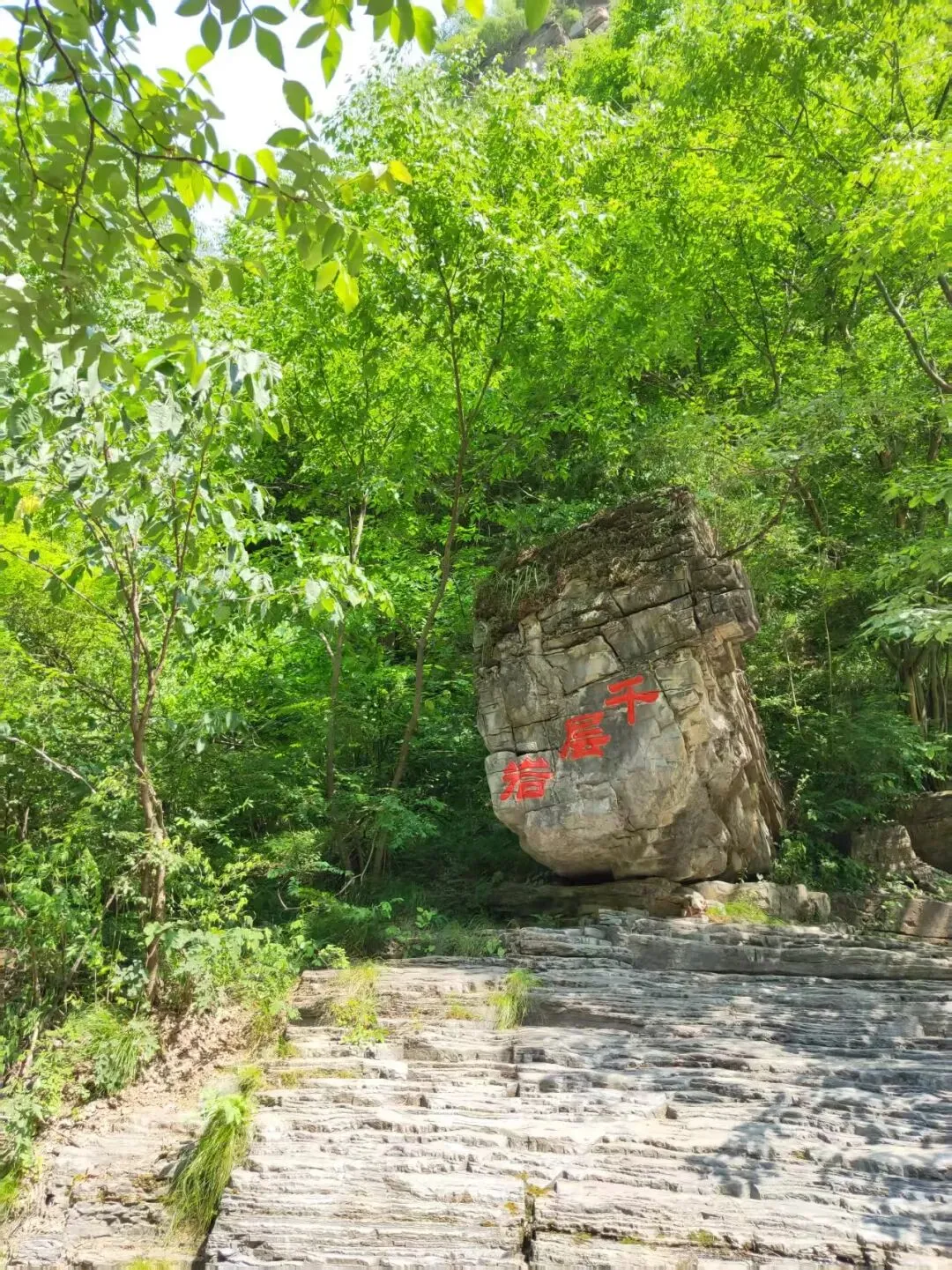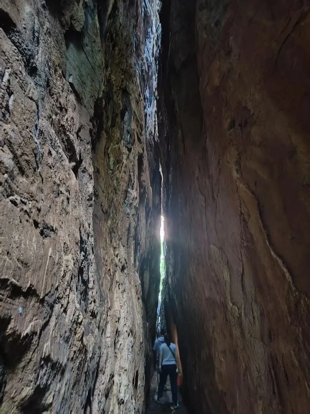 右侧的探秘路线,则是大自然的鬼斧神工之作。沿着千古河床缓步前行,脚下是亿万年水流冲刷形成的完整基岩面,光滑温润的石面上布满天然纹路,石中石景观千姿百态,边走边看,仿佛触摸岁月的痕迹。行至华北一线天,瞬间被大自然的壮阔震撼,65米长的峡谷裂缝最窄处仅0.6米,侧身方能通过,抬头只见一线天光穿透缝隙,洒下斑驳光影,岩壁渗出的清凉水汽让温度骤降,岩壁上的自然纹路如壁画般神奇,步步皆惊喜。