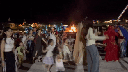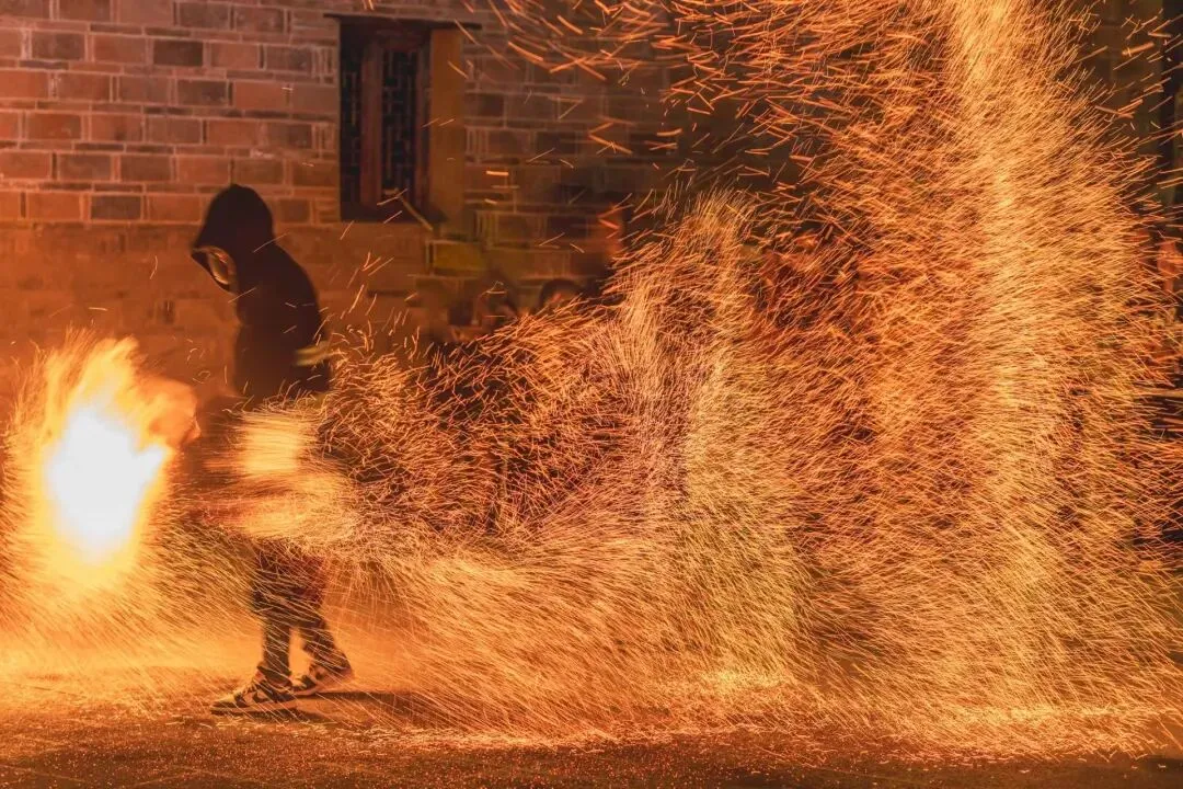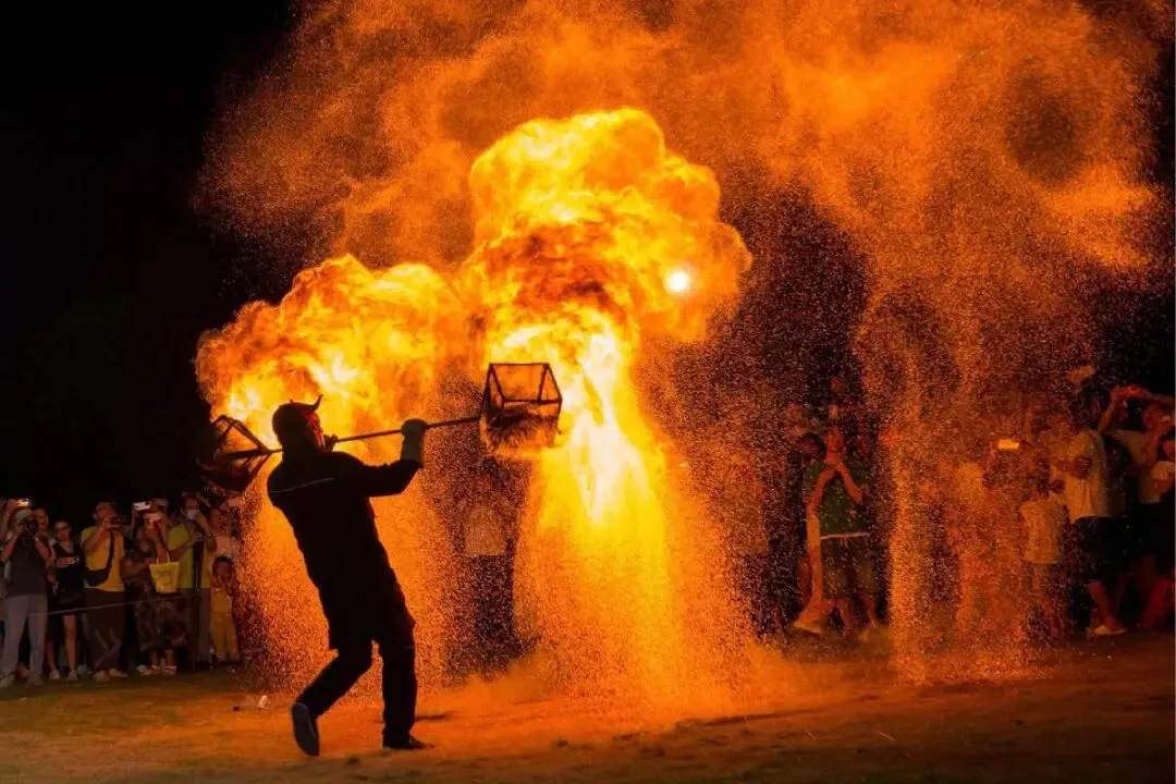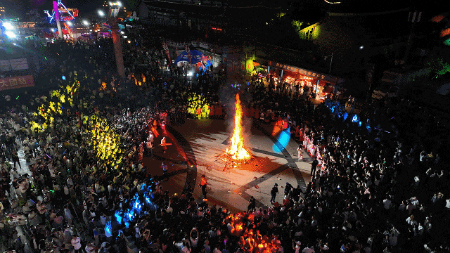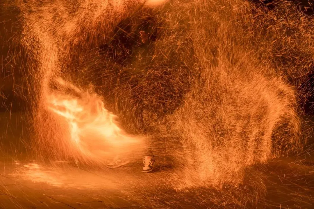 人群穿梭在“火海”中的视觉盛宴