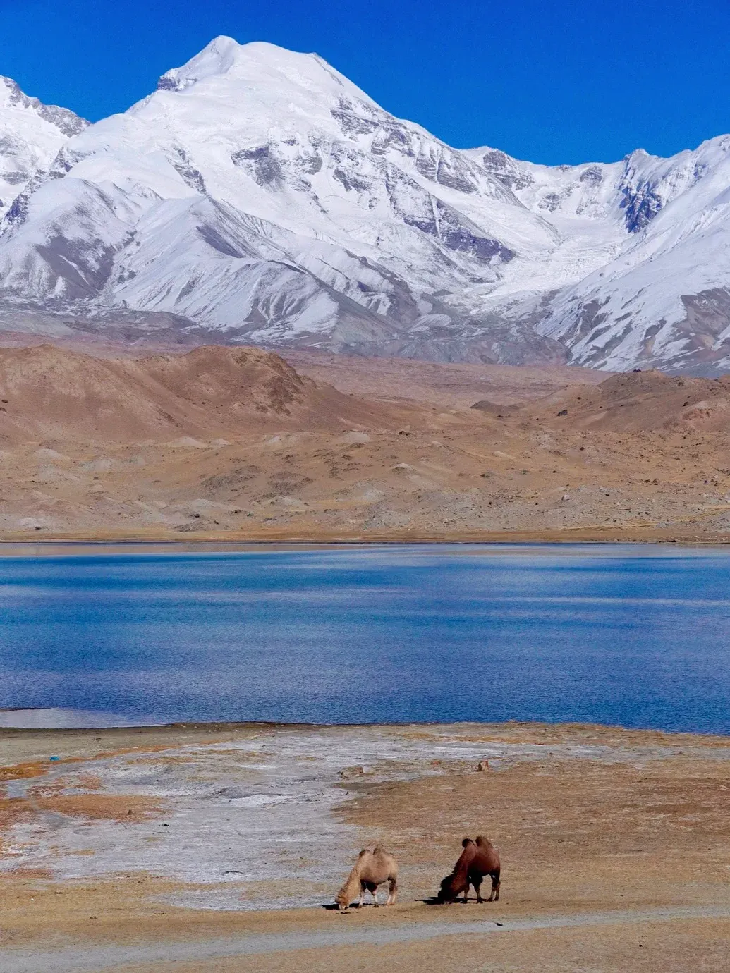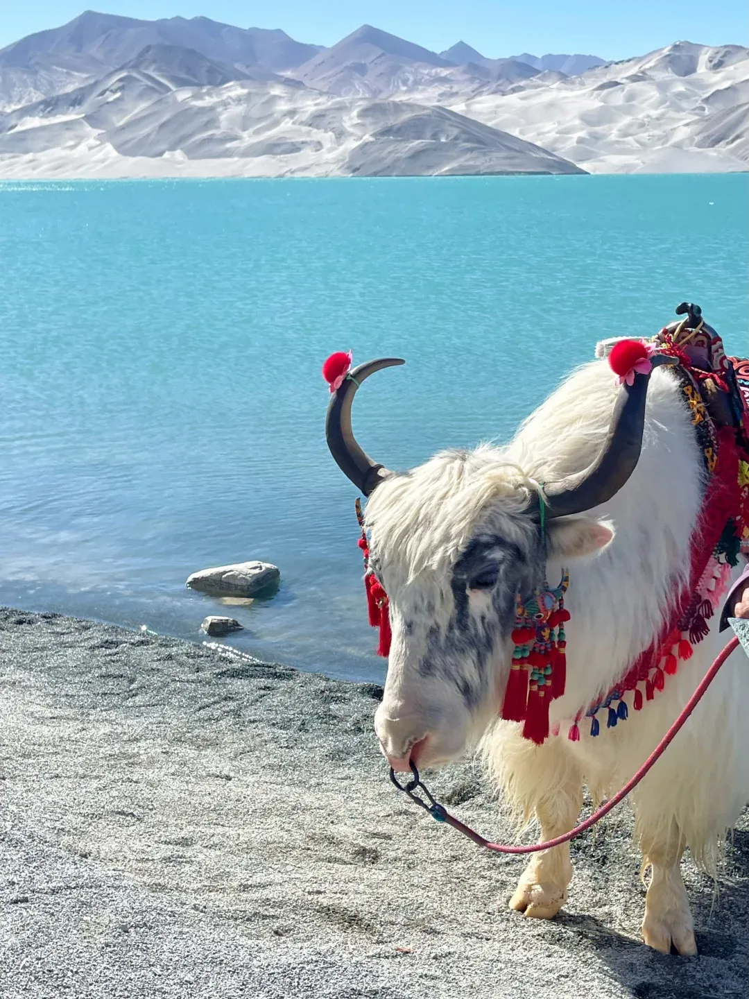 从喀什一路开往塔县,到了白沙湖,大自然的浓烈色彩跃入眼帘