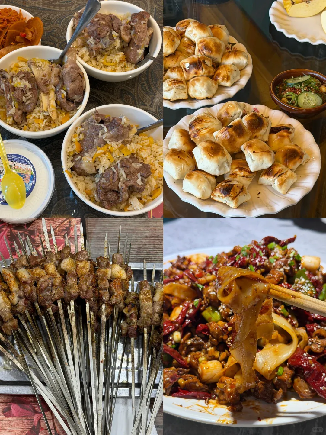 推荐美食:手抓饭,烤包子,羊肉串,大盘鸡!