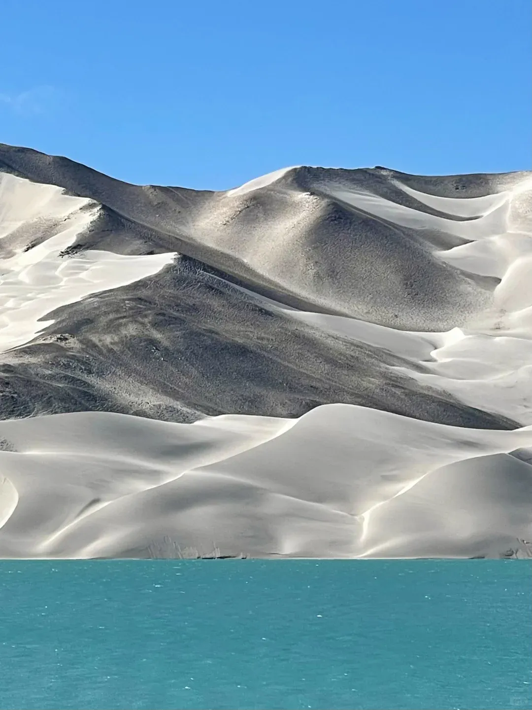 从盘龙古道下来回塔县,斑迪尔蓝湖是必经之路,路边很多好看的机位可以停车拍。 这边其实之前叫下坂地水库,是雪山和冰川的融水汇集在这了,后面因为慢慢出名了才改了个好听的名字,之前电影《冰山上的来客》还在这边取景过。 和白沙湖一样都是很小众但超值的🆓景点。