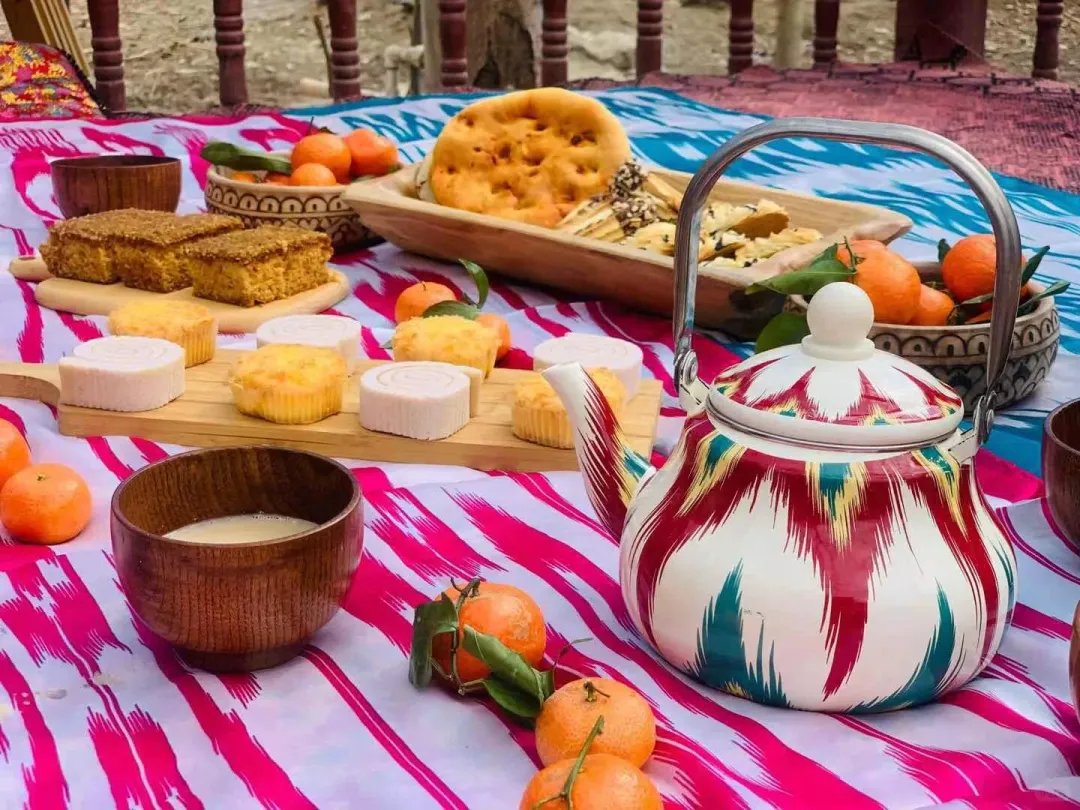 D6: 阿图什-莎车老城-民族老茶馆-非遗艾德莱斯欢迎礼-民俗文化体验-骆驼车驶入沙漠营地体验:沙漠观星,木卡姆实景演艺,篝火晚会-沙漠定食-【露营帐篷】