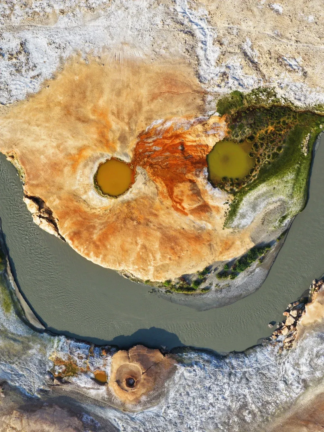 木吉火山口四周被高原湿地包围,形成了冰川、冰蚀湖、冰洞等许多浑然天成的自然景观,部分火山口积水后呈现硫磺黄、孔雀蓝等色彩,被称为“帕米尔之眼”或“恶魔之眼”。此外,火山背后是著名的十八罗汉雪山,风景壮美。
