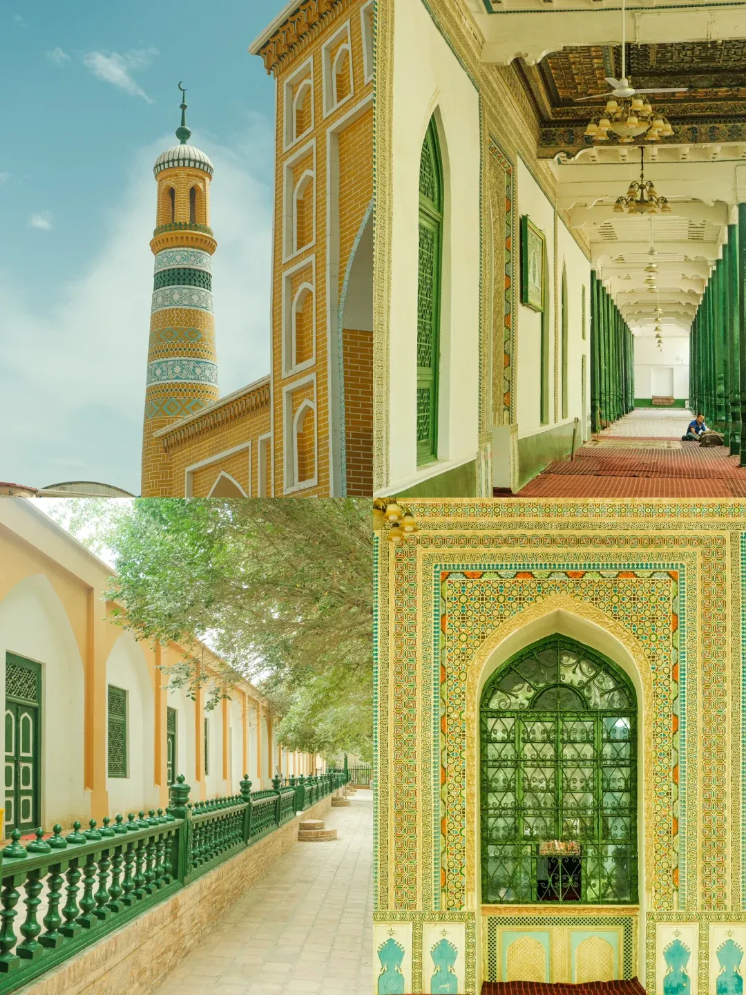 3. 艾提尕尔清真寺:作为新疆最大的清真寺,艾提尕尔清真寺庄严肃穆,充满了神圣的气息。每天都有众多穆斯林前来做礼拜,场面十分壮观。