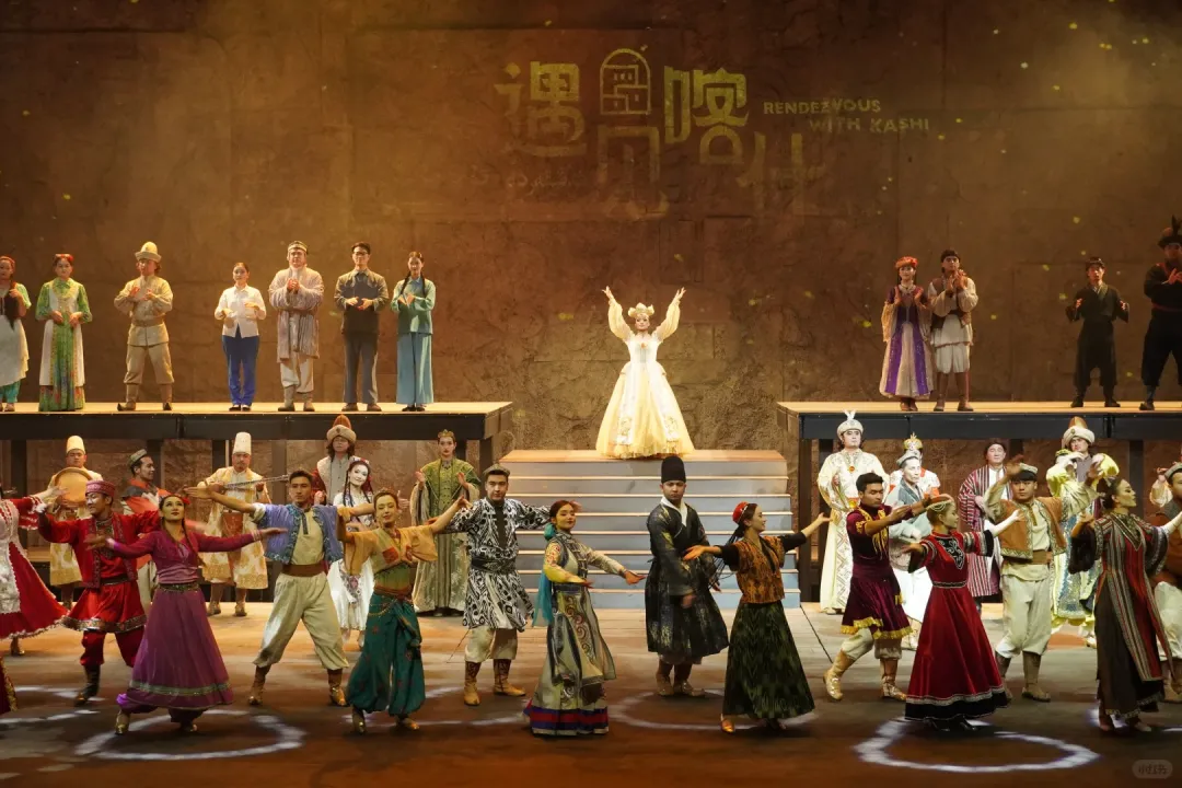 《遇见喀什》用一场沉浸式演艺,将国家级非遗“十二木卡姆”从典籍与传说中解救出来,化作可触可感的生命律动。整个剧时长为100分钟,分为“时空之门”“疏勒古城”“丝路明珠”“乐魂剧场”四个空间。