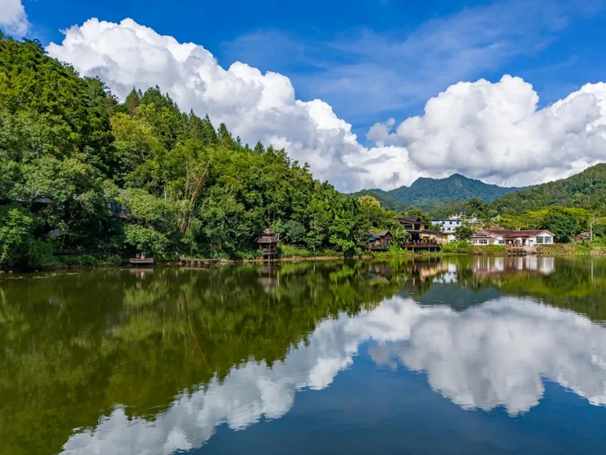 自驾6公里,小隐于野,在海南岛五指山水满乡,藏着一处「桃花源」跟随方诺寨,探索五指山的雨林秘境之美。徜徉其中,恍如走进人间仙境。四面环山,山下有湖,湖畔有寨,寨中有河。二十八个自然景观和人文景观可与巴厘岛相媲美,被誉为"海南乌布"
