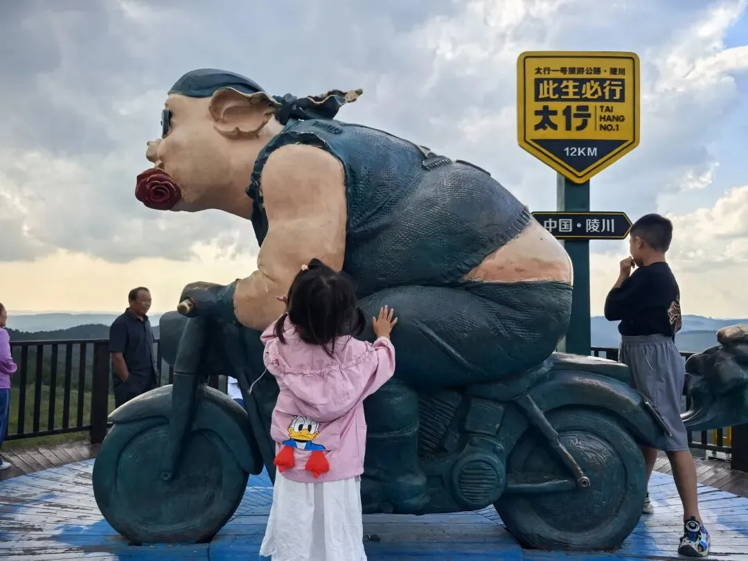 路过高老庄,打卡【网红猪八戒】!当我们屹立于棋子山之巅的平台之上,放眼望去,群山如浪,尽收眼底,心中不禁涌起“登临绝顶我为峰,群山皆小任遨游”的豪迈情怀。