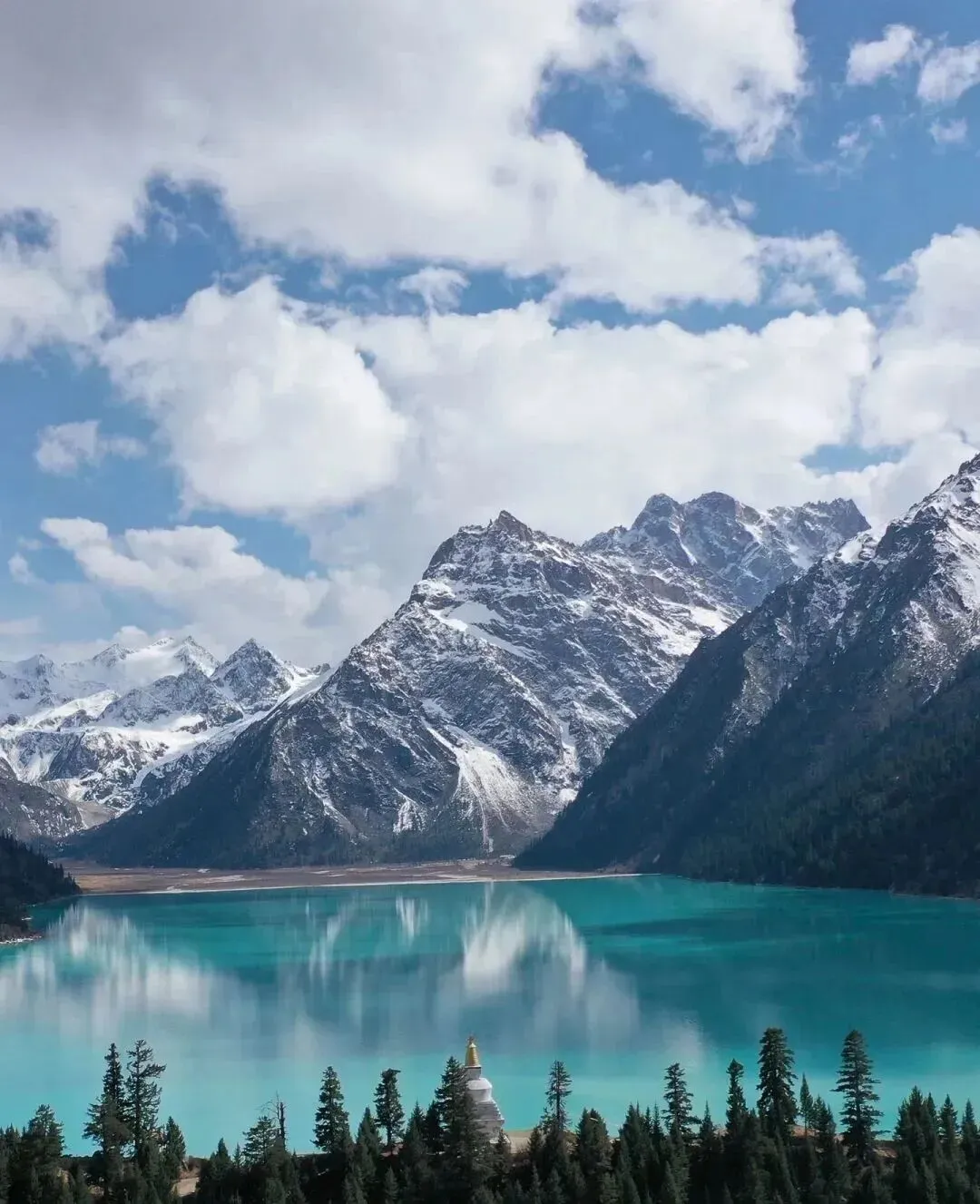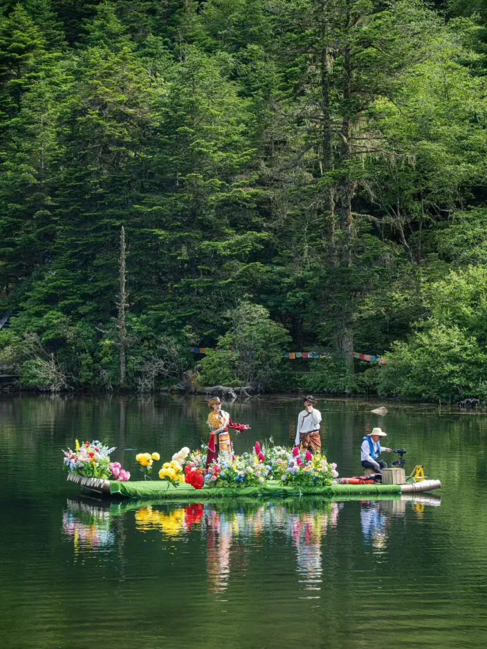 沟中的措普湖被誉为“康巴第一圣湖”,背靠雪山,森林环抱。