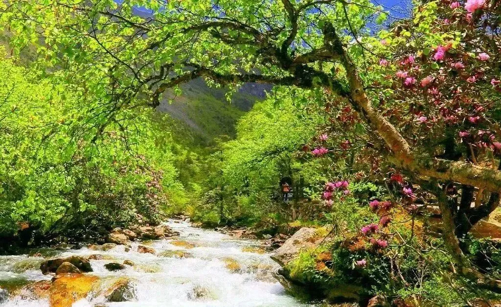 杜鹃峡里68种高山杜鹃沿峡谷绵延数公里,粉紫、鹅黄、雪白的花海与瀑布、溪流、森林相映成趣;芳草坪绿草如茵,野花遍地,随手一拍都是大片!