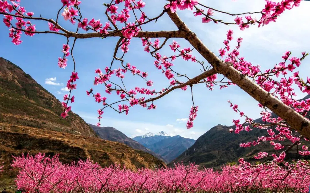 春天是甲居藏寨最美的季节之一,3月至4月期间,藏寨的梨花、桃花等花卉竞相开放,与藏式民居相互映衬,形成了一幅幅如诗如画的美景。